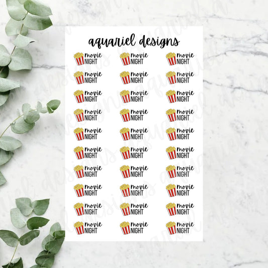 Movie Night Sticker Sheet | Set of 30 Movie Night Planner Stickers | Bullet Journal Stickers
