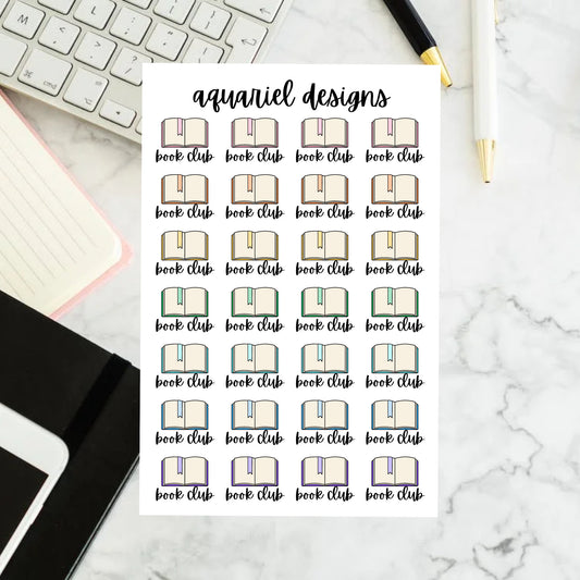 Book Club Stickers, Book Icon Planner Stickers, Colorful Book Club Bullet Journal Stickers