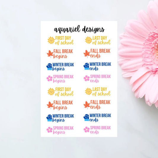 School Breaks/Holidays Stickers for Planners, Bullet Journals, Calendars, etc.