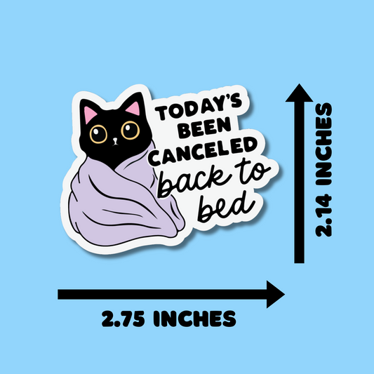 Today's Been Canceled Back To Bed Stickers, Funny Cat Stickers for Planners, Water Bottles, Laptops, etc.