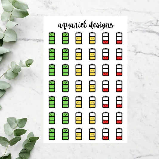 Cute Energy Tracker Stickers, 42 Kawaii Energy Battery Tracker Stickers for Planners, Bullet Journals, Calendars, etc.