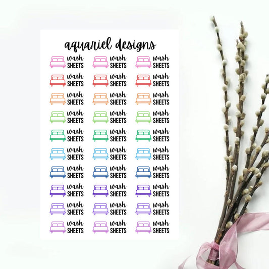 Wash Sheets Stickers, 30 Wash Bed Sheets Reminder Stickers for Planners, Calendars, Bullet Journals, etc.