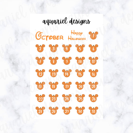 October Disney Dates | Set of 30+ Halloween Themed Planner Stickers | Bullet Journal Stickers