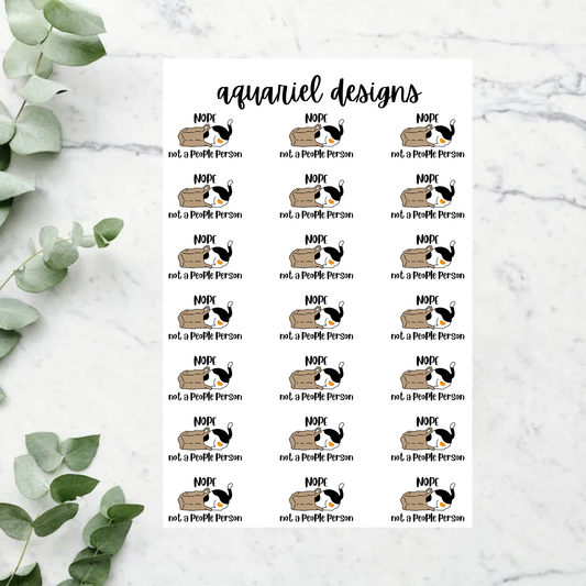Not A People Person Stickers, 24 Cute Cat Stickers for Planners, Calendars, Bullet Journals, etc.