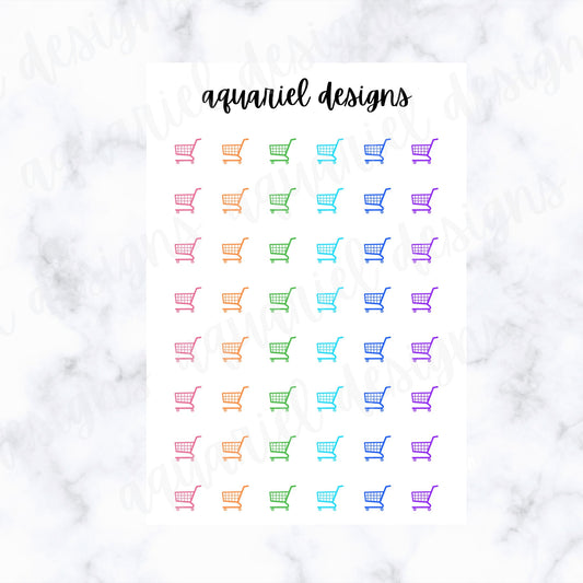 Grocery Shopping Icon Sticker Sheet | Set of 48 Rainbow Grocery Planner Stickers