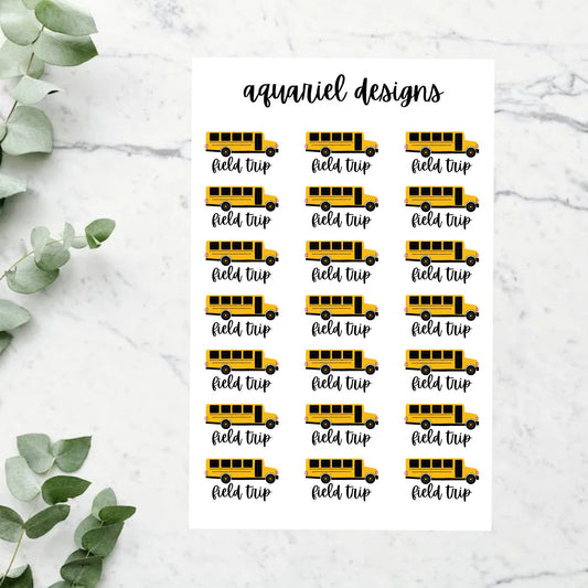 Field Trip School Stickers | Set of 21 School Bus Field Trip Planner Stickers | Bullet Journal Stickers