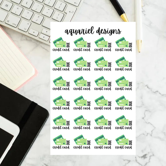 Credit Card Due Stickers | Set of 24 Green or Red Credit Card Payment Reminder Planner Stickers | Bullet Journal Stickers