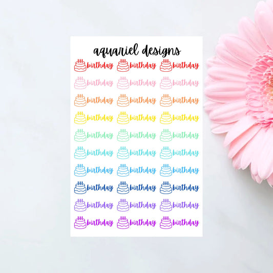 Happy Birthday Cake Stickers, Birthday Planner Stickers, Birthday Cake Stickers, Bday Bullet Journal Stickers