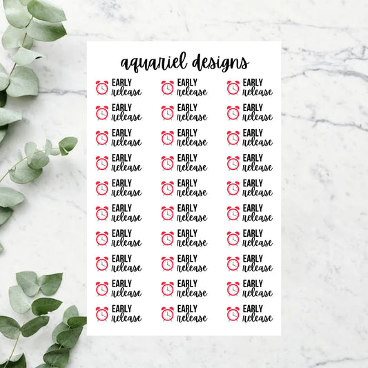 Early Release Stickers, 30 Early Release Reminder Stickers for Planners, Calendars, Bullet Journals, etc.