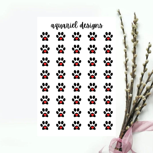 Paw Print Heart Stickers, Cute Animal Stickers for Planners, Calendars, Bullet Journals, etc.