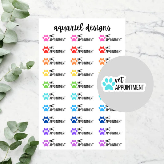 Vet Appointment Stickers | Set of 30 Rainbow or Black Vet Appointment Reminder Planner Stickers | Bullet Journal Stickers