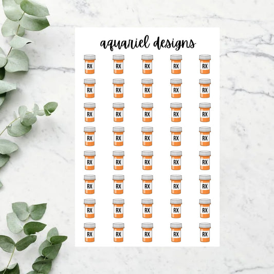 Prescription Bottle Stickers, 40 Rx Bottle Stickers for Planners, Calendars, Bullet Journals, etc.