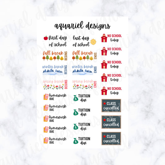 School Reminder Stickers | School Stickers for Planner | Set of 28 School Planner Stickers | Bullet Journal Stickers