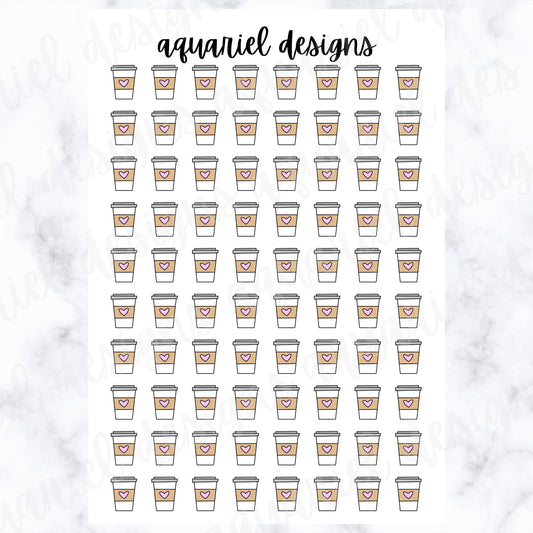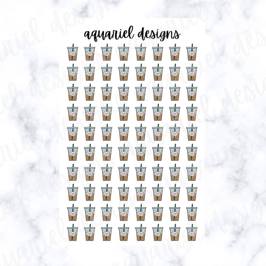 Mini Iced Coffee Cups Sticker Sheet | Set of 80 Coffee Cups Planner Stickers | Bullet Journal Stickers