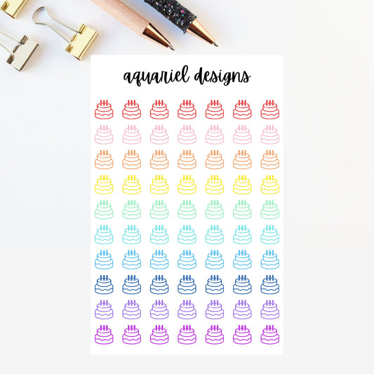 Mini Birthday Cake Stickers | Set of 70 Mini Birthday Icon Planner Stickers | Bullet Journal