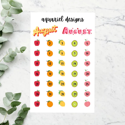 August Monthly Sticker Kit | Fruit Themed Stickers | Set of 60 August Planner Stickers | Bullet Journal Stickers