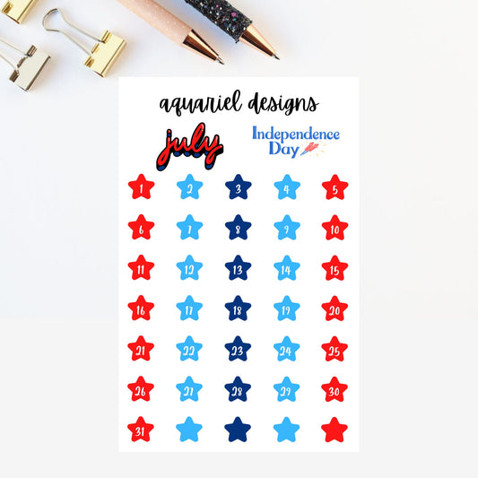 July Monthly Sticker Kit | 4th of July Themed Stickers | Set of 60+ 4th of July Planner Stickers | Bullet Journal Stickers