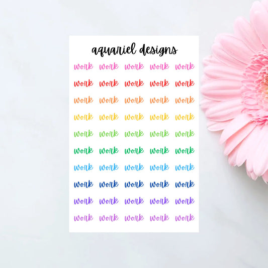 Work Script Planner Stickers | 50 Colorful Mini Work Planner Stickers | ECLP Stickers | Script Work Bullet Journal Stickers