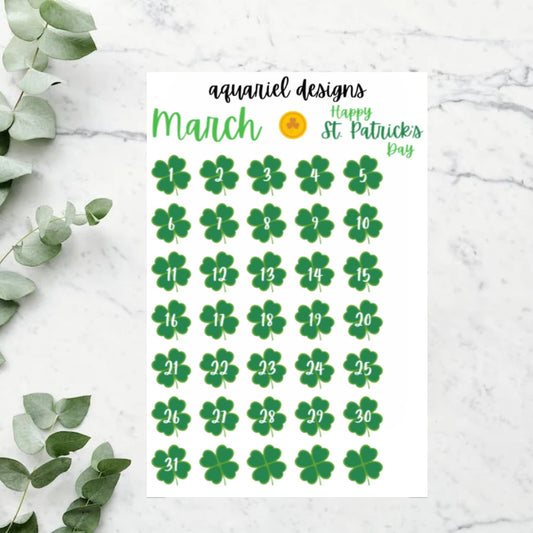 March Monthly Sticker Kit | Set of 50+ St. Patrick's Day Themed Planner Stickers | Bullet Journal Stickers