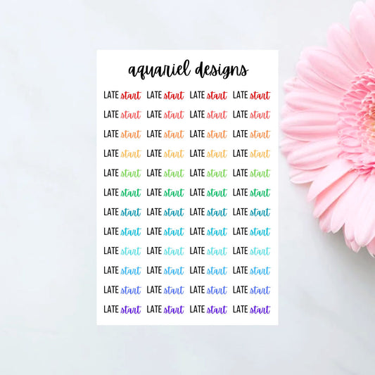 Late Start Stickers, Set of 48 Late Start Text Planner Stickers, Late Start Bullet Journal Stickers