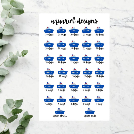 Cruise Countdown Stickers, Set of 32 Cruise Planner Stickers, Bullet Journal Stickers