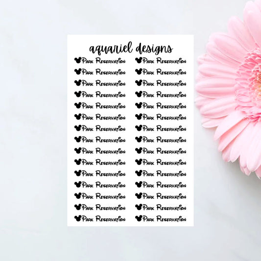 Disney Park Reservation Stickers, Park Reservation Planner Stickers, Bullet Journal Stickers