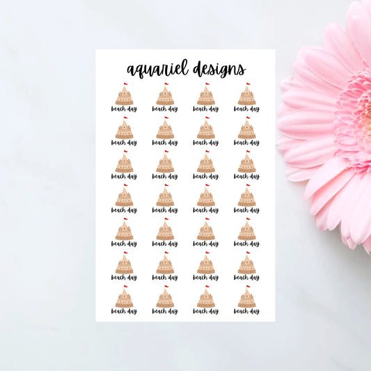 Beach Day Stickers, 28 Sand Castle Beach Day Planner Stickers, Sand Castle Bullet Journal Stickers