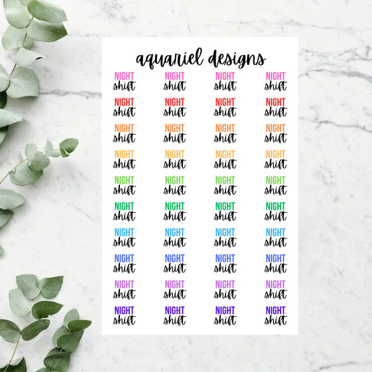 Night Shift Stickers, 36 Night Shift Reminder Stickers for Planners, Calendars, Bullet Journals, etc.