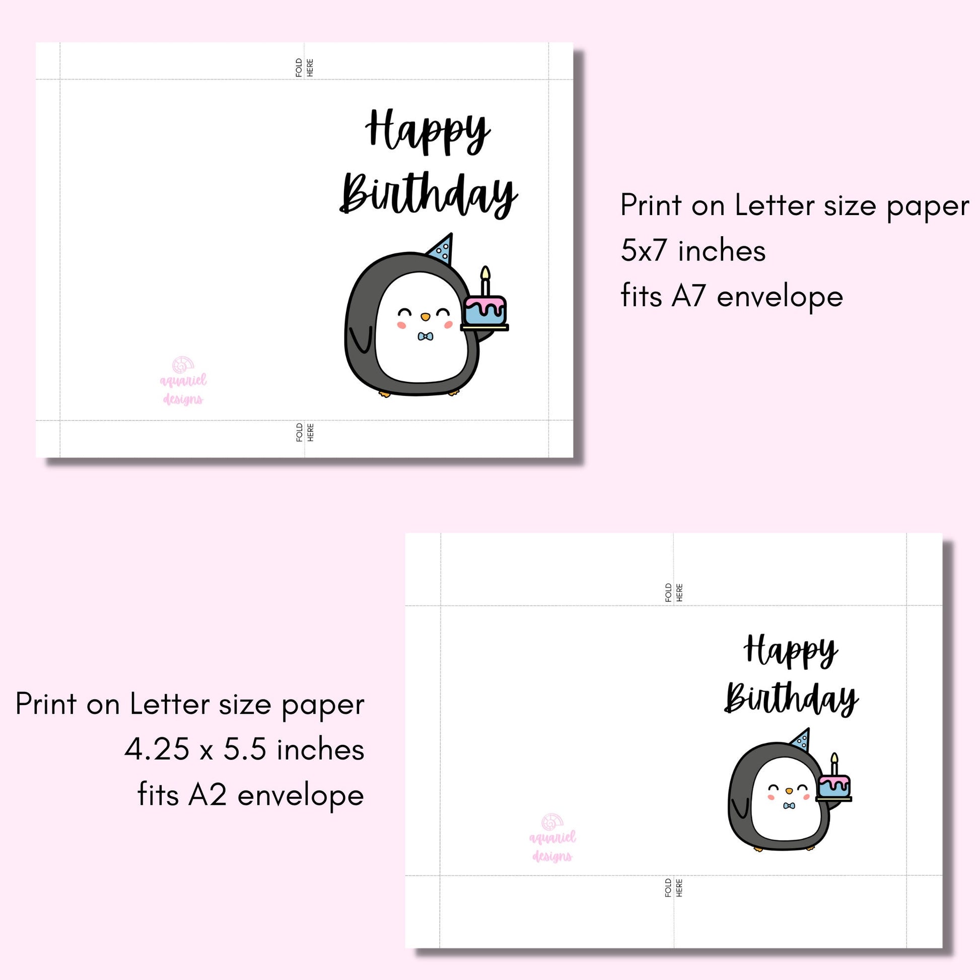 Cute Penguin Happy Birthday Card is perfect for sending to anyone for their birthday! The card is easy to print and can be used in multiple envelope sizes.
