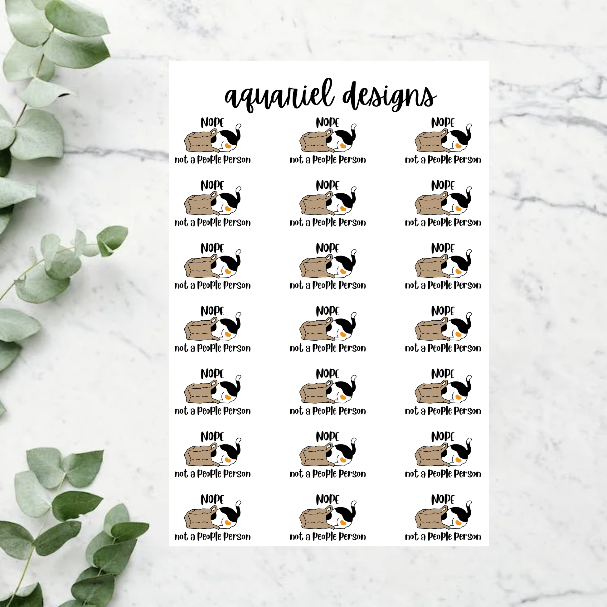 Not A People Person Stickers, 24 Cute Cat Stickers for Planners, Calendars, Bullet Journals, etc.